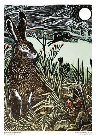 Discover "Hidden Hares," a 1000-piece jigsaw puzzle by Angela Harding, featuring bold artwork and sustainable materials. Includes an A4 reference poster!