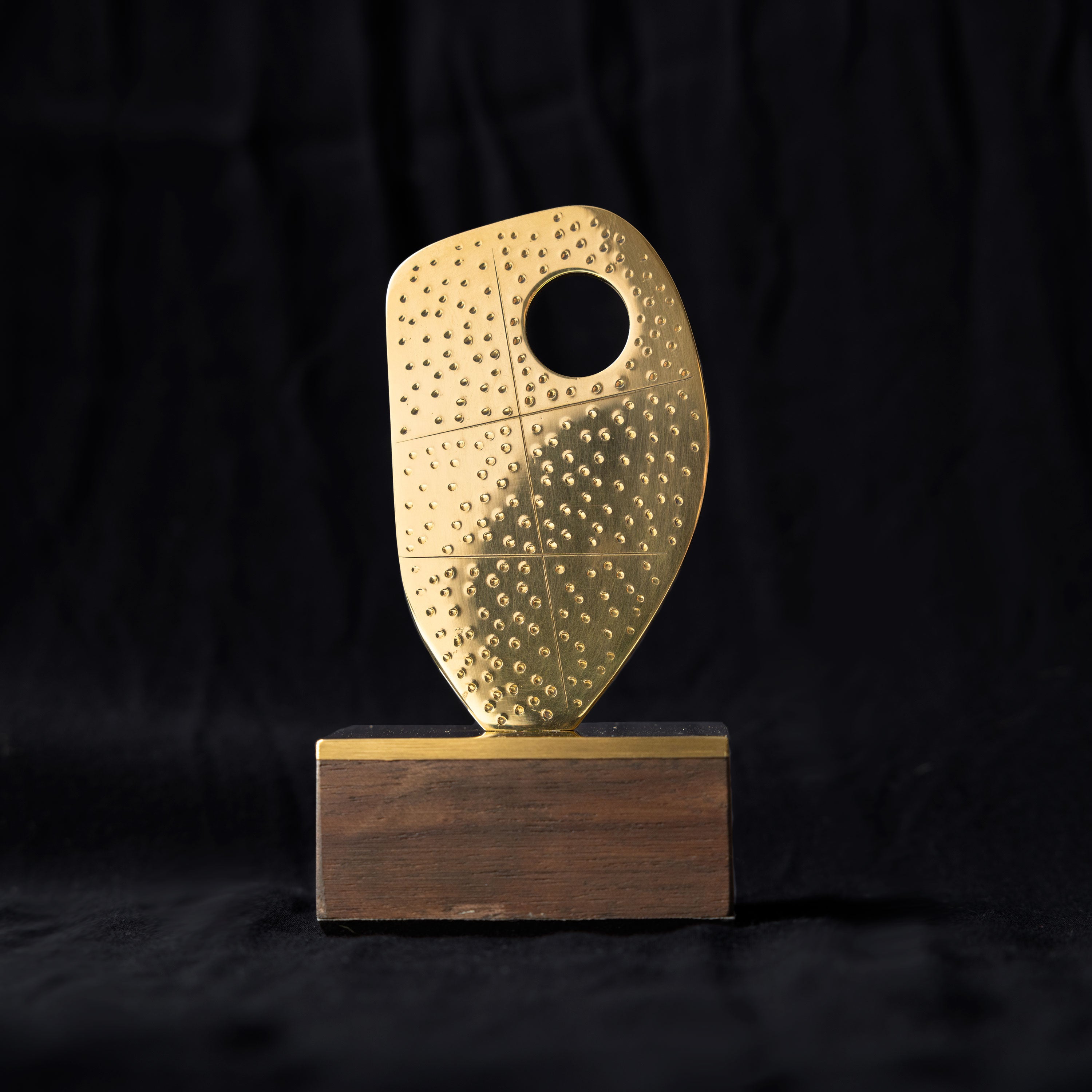 Striking brass ornament inspired by the abstract forms of Barbara Hepworth's work.