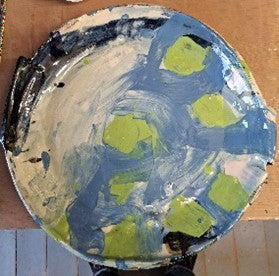 Blue and Green Thrown Altered Vessel Platter by Barry Steadman