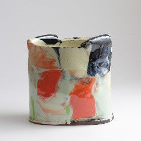 Large 14cm Orange and Blue Thrown Altered Vessel by Barry Steadman