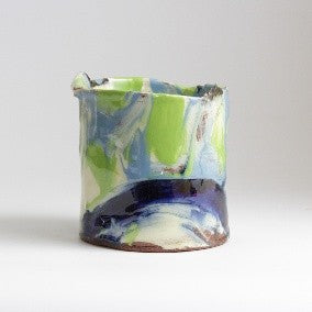 Small 10cm Blue and Green Thrown Altered Vessel by Barry Steadman