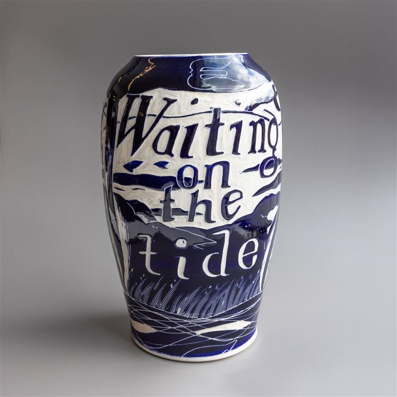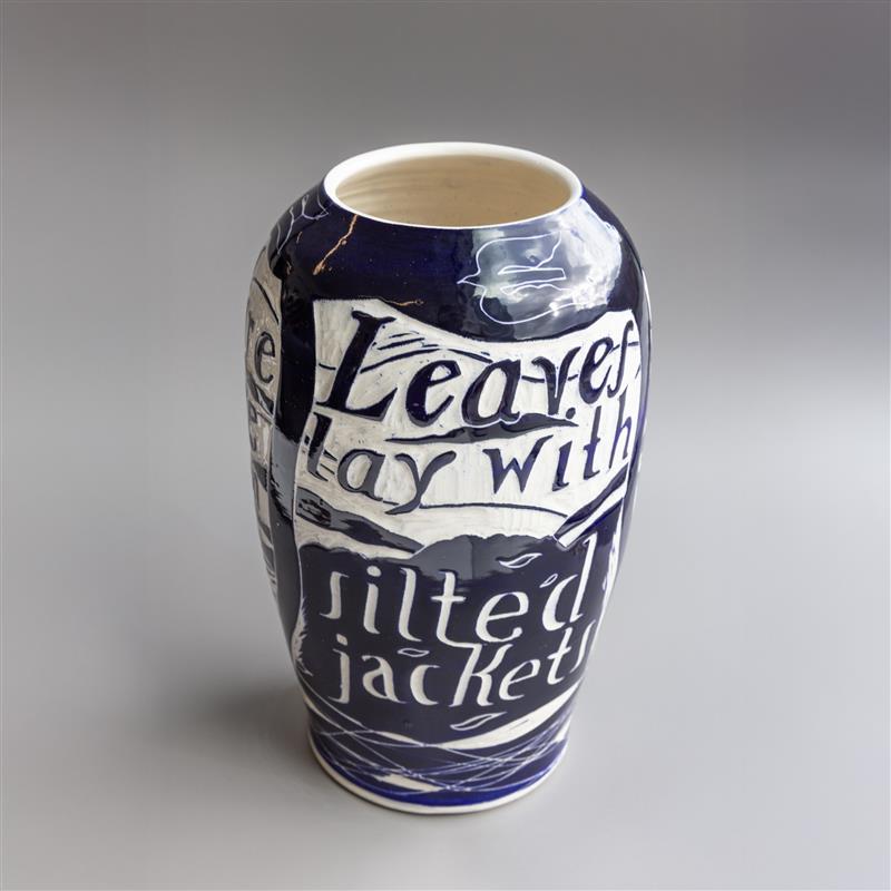 Benjamin Hall – otherwise known as Mr Ben – is a ceramicist, painter and songwriter. After teaching himself in an old barn next to his childhood home, the unmistakable imprint of the fells and valleys of his native Westmorland became indelibly furrowed into clay, canvas and song. Today, Hall runs a thriving pottery studio affectionately known as ‘The Melody Shed’ in the heart of Sheffield’s old pewter district alongside writing, releasing albums and touring the UK with his band. Hall’s visual work ranges from humble tableware to beguiling illustrative vases, jars and oil paintings. Traditional ‘Sgrafitto’ is at the heart of the ceramic decoration, with handmade tools carving intricate landscapes and poetry written by Ben into a variety of slipped vessels. Hall’s love of regional dialect and knack for a lyrical turn of phrase comes to life through the tactile engraving process, merging his physical work with the literary.