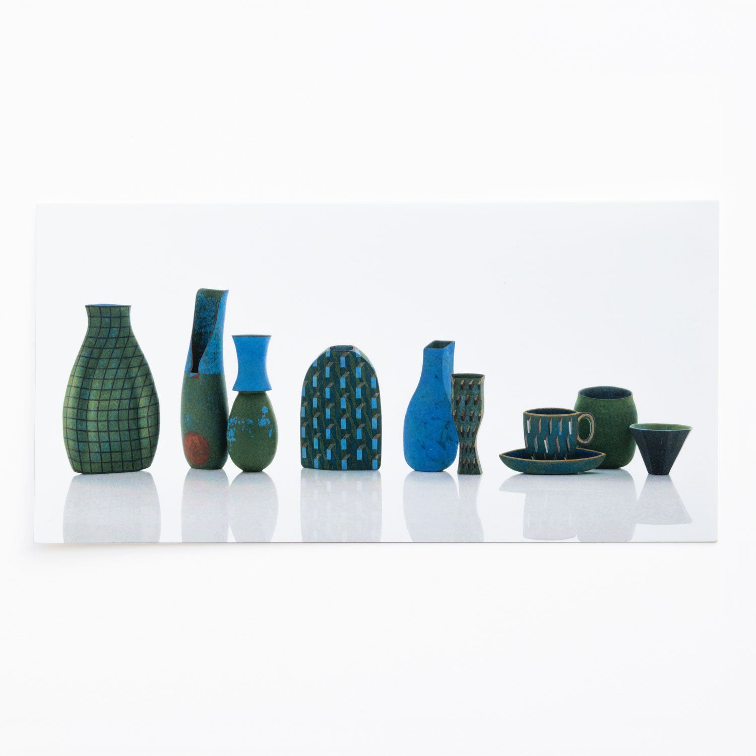 A selection of 6 perforated concertina postcards featuring works by Elizabeth Fritsch.