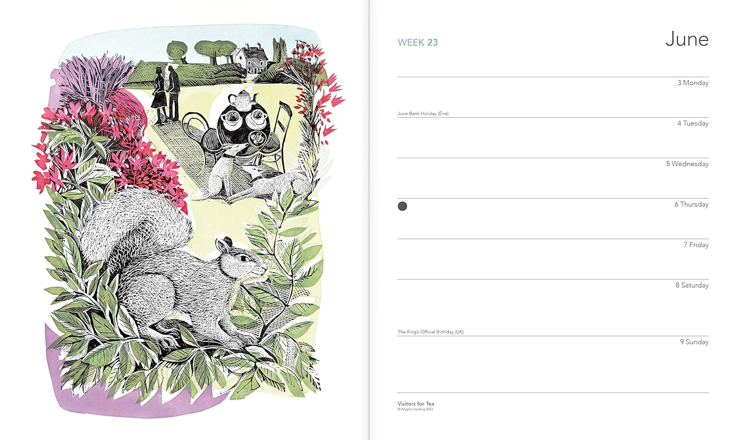 Showcasing more than 30 of her incredible artworks, this delightful week-to-view desk diary.