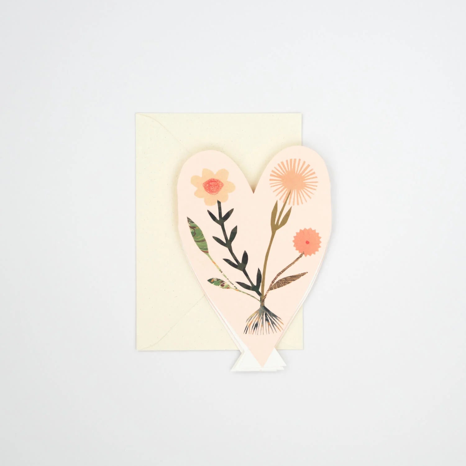 A concertina of beautiful hearts! Featuring hand-collaged whimsical wild flowers in a beautiful natural colour scheme.
