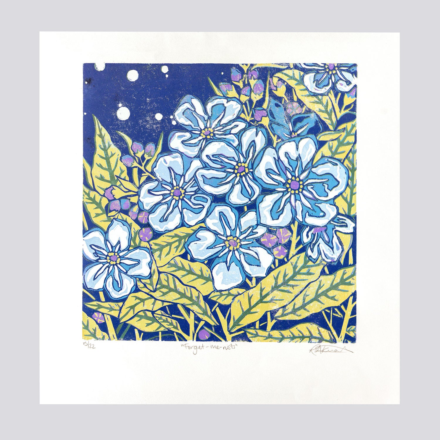 Original hand printed linocut print using reduction method.